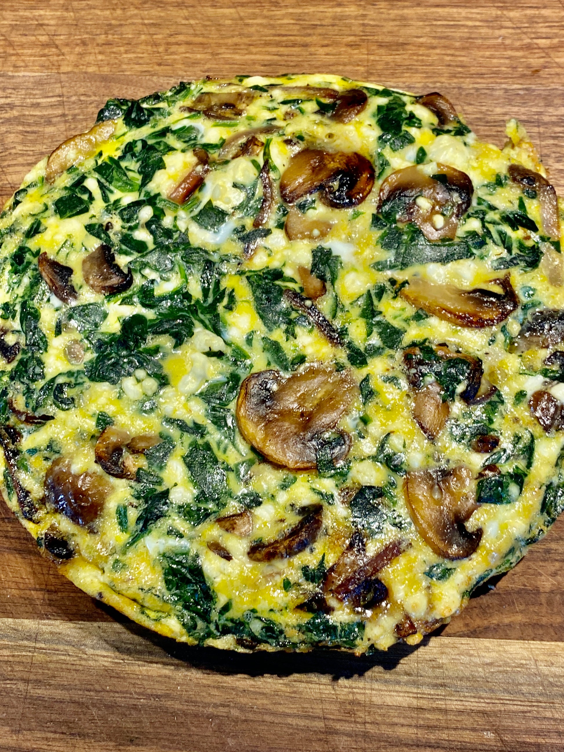 This noteworthy image is a vibrant, abstract cornucopia of colors, with a dynamic and fluid sense of movement that is almost psychedelic in nature. The deep blues and purples evoking a sense of depth and mystery, contrasting with the energy and warmth of the fiery reds and sunny yellows. Bright greens bring a feeling of life and growth, as if depicting the lushness of a fantastical garden. Or at the very least, a fistful of fresh spinach. Much like the spinach in this reimagined mushroom, spinach and goat cheese frittata. Which, as it so happens, was the first piece I created when I circled back to making art. Something about the dish inspired me - the colors, the textures, the taste… I can’t really say. But this is the image that started me down my current artistic path. - Eggz 1 MSGC, Homemade